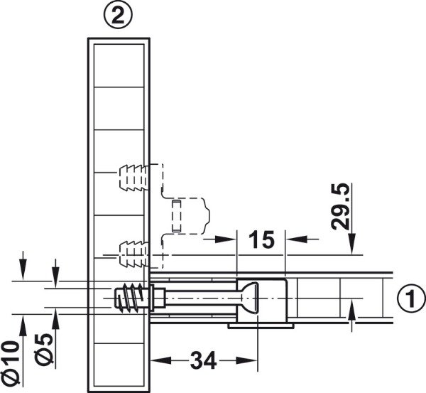 Herraje de unión, Häfele Minifix® 15, fundición de zinc, sin reborde